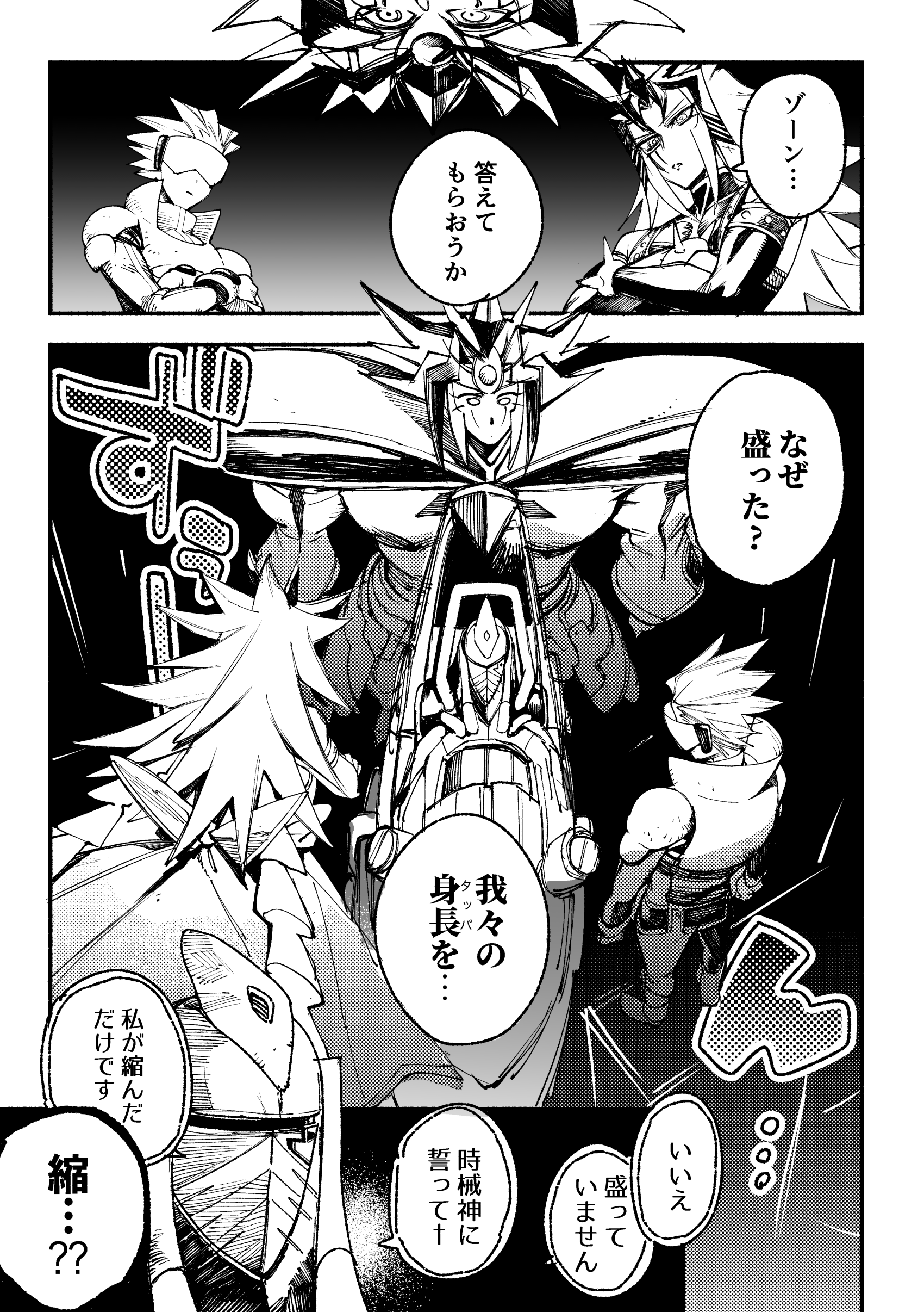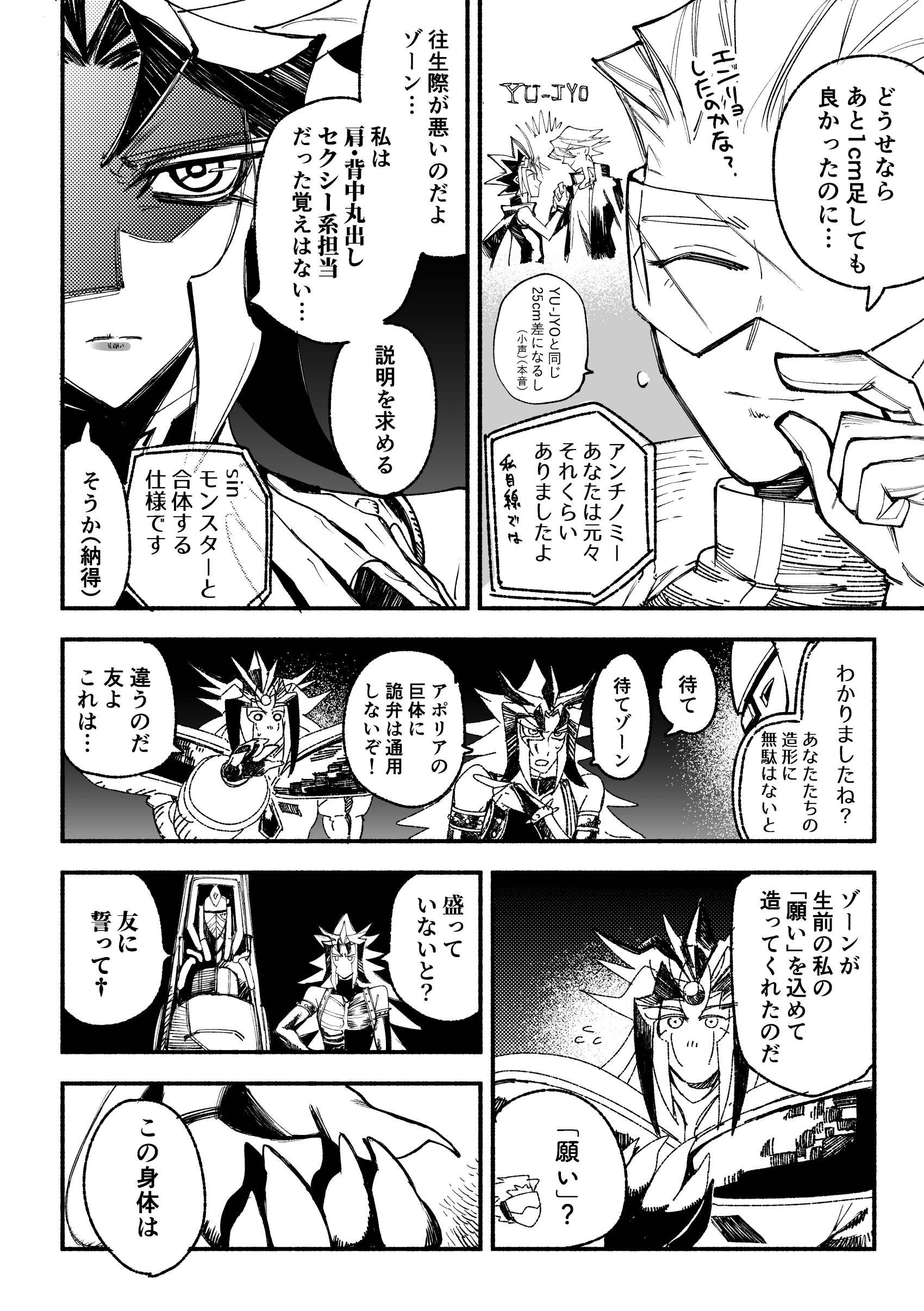 巨体のアポリア氏はもちろんさすがにパラドックスさんは盛ってそうだし…実はアンチノミー氏も盛って199cmだったら面白くない??という悪戯心で描かれたものなので マジで参考にしないでください。でもジョニー氏とゾーンさま(英雄のすがた)、ブルーノと遊星さんより身長差開けてないように見えるので…どう思いますか?!(たかだか数カットじゃわかんないよ〜〜)