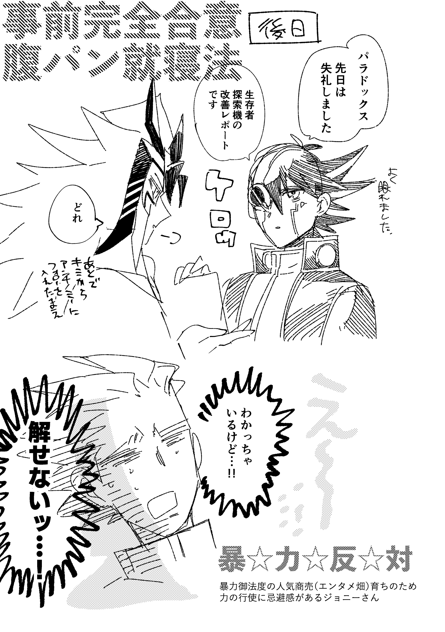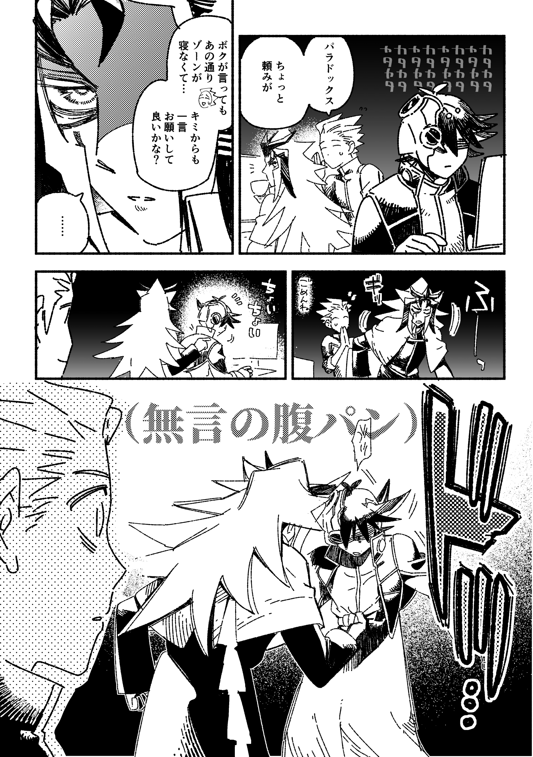 殴っている方の拳も痛いパラドックスさん(パラさんだけが痛いのかも)(そんな…)すみません原作に"ある"けど"ない"暴力描写を…。腹パンは5D's世界において伝統芸能と聞きました、満足同盟よろしく未来組の腹パンサイクルがあったら見てみたい