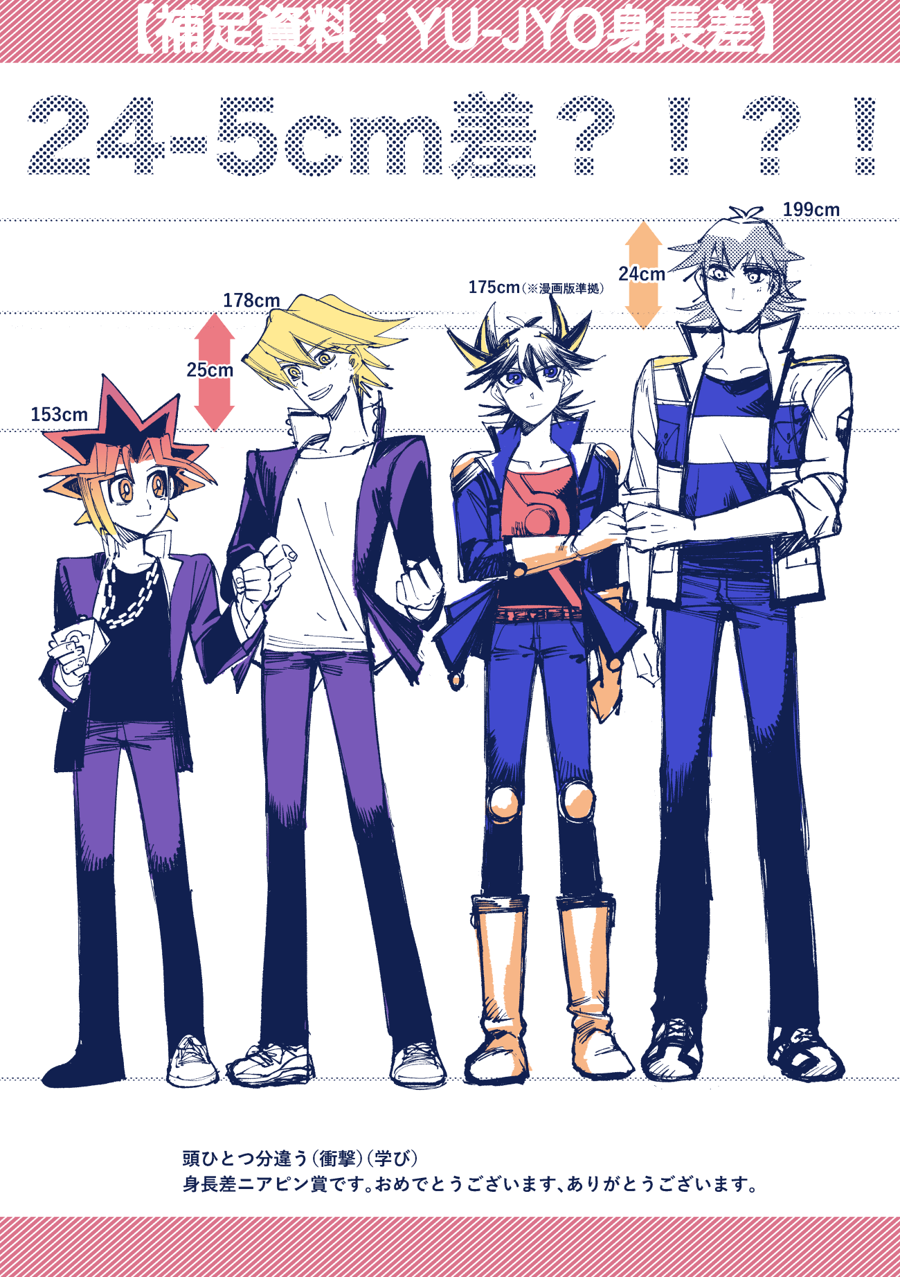 確か小野監督は遊星さん170cmくらい〜と仰っていたはずなので、漫画版準拠にしなければなんと25cm以上の差を作ることも可能です。なんと。