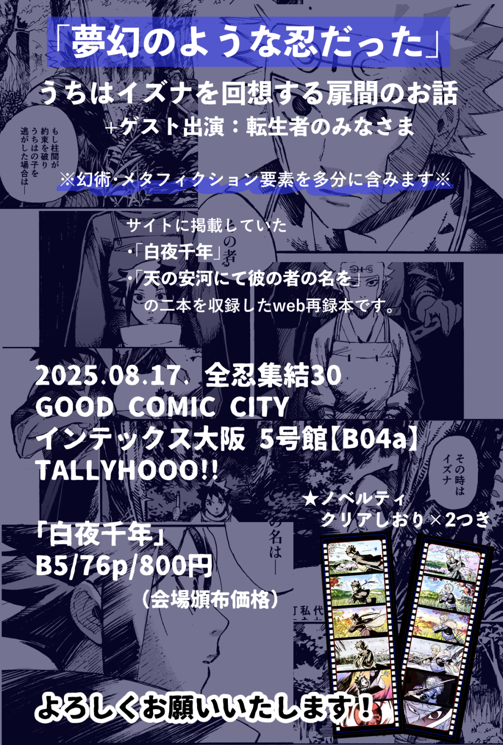 あとは8月イベント用に冊子として「天の安河にて彼の者の名を」も添えて再編集したり(完全にいい忘れてた気がするんですけど実はこれセットの漫画だったんですよね…ちゃんと書いとけばよかった)、写植貼ったり(21世紀…)、一部加筆修正しつつ事務ページ作って入稿すればオッケー!ヤッター!!!