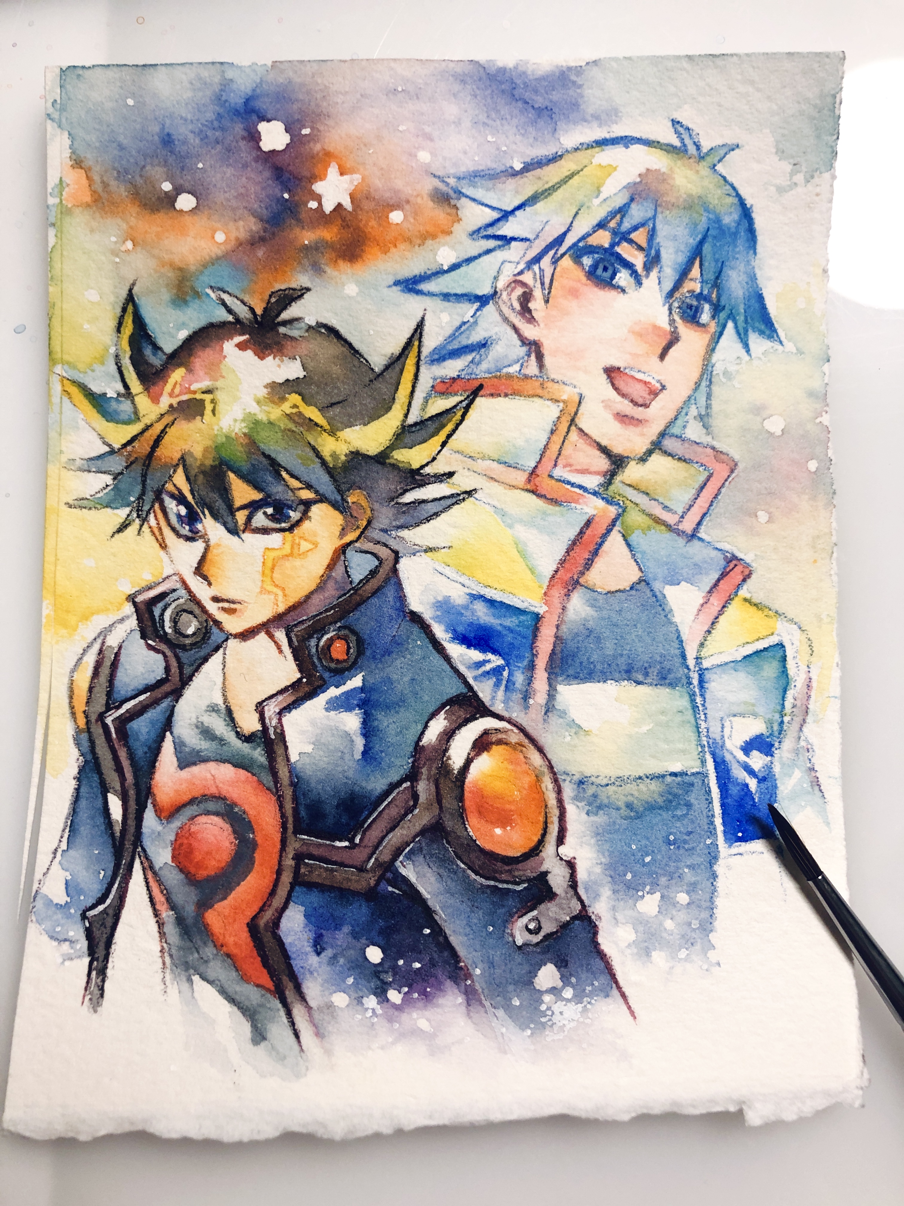 急に遊戯王5D'sに襲われてしまったので水彩紙の切れ端に試し描き