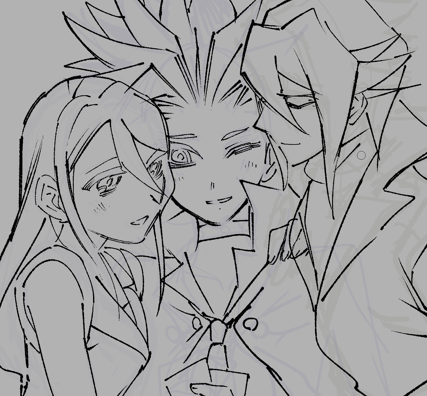 #遊戯王 聖遺物の幼馴染三人組のこと考えてたらアクファxyz組のことも思い出して〜〜〜〜ウオオオオオオマスター!!!!兄妹で主人公ポジのウォトコをサンドイッチしたやつ一丁!!!!!!(いつもの)